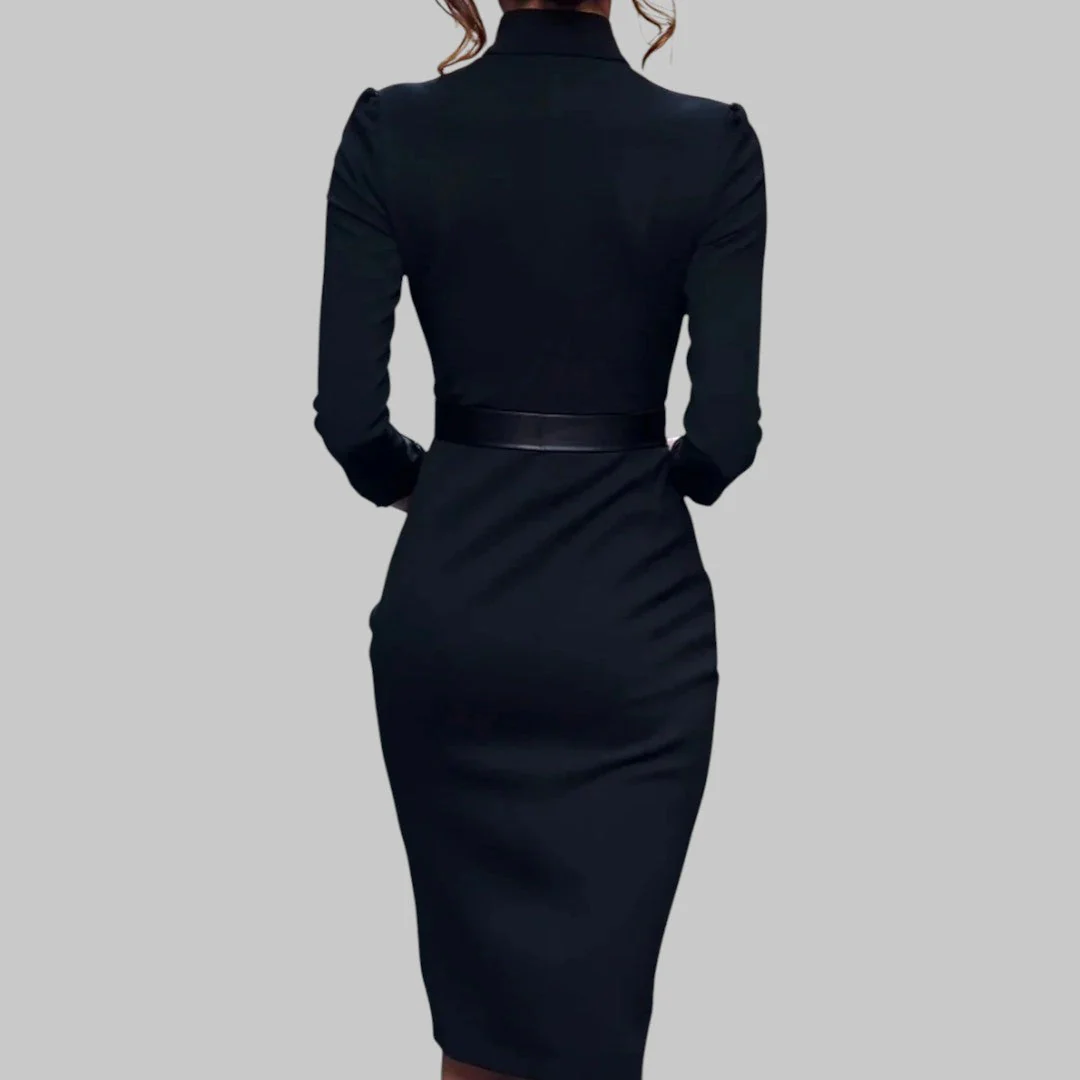 Alicja | Midi sukienka ołówkowa z paskiem i eleganckim kołnierzem damska