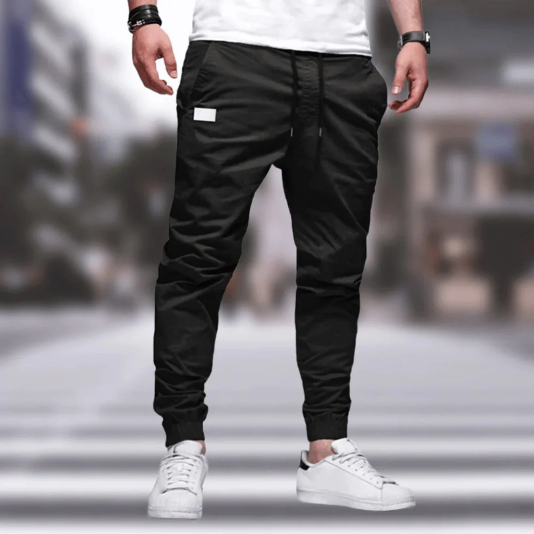 Nowoczesna, lekko zwężana nogawka zakończona elastycznym ściągaczem nadaje spodniom dynamiczny charakter. Elastyczny pas ze sznurkiem pozwala na indywidualne dopasowanie, bez rezygnacji z komfortu.